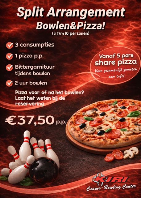 De pizza kan naar wens vóór of na het bowlen worden geserveerd.